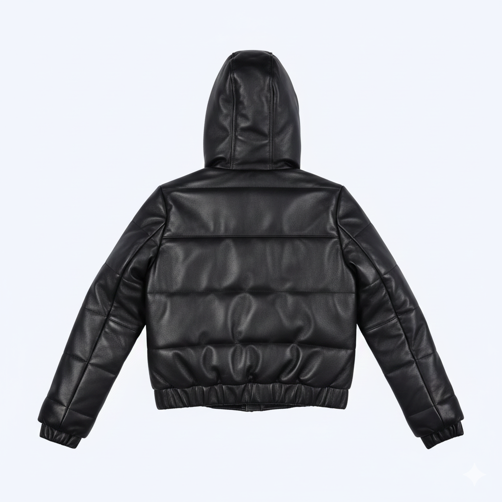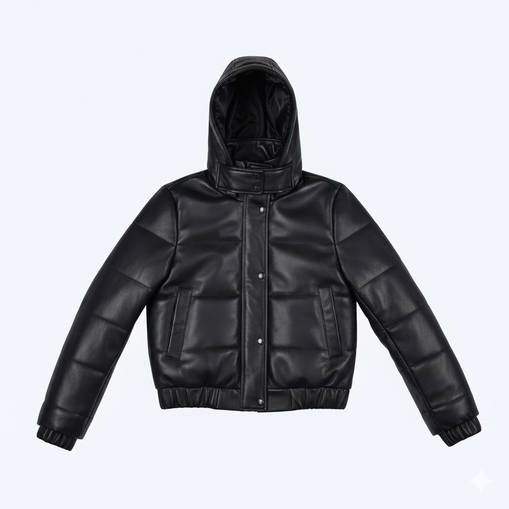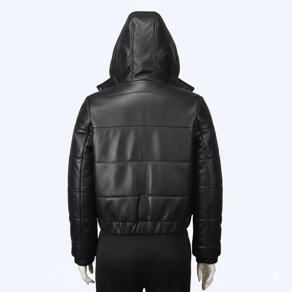 Elevate your cold-weather wardrobe with this standout statement piece. Crafted from premium, butter-soft black leather, this hooded puffer jacket offers the perfect fusion of edgy street style and luxurious comfort. The vibrant crimson hue is designed to turn heads, while the insulated horizontal quilting provides exceptional warmth without the bulk.
