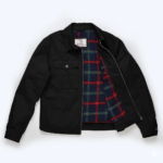 This jacket features a stylish black colored exterior with a classic plaid lining, making it a versatile piece for both casual and semi-formal occasions. It’s functional design includes two chest pockets and two side pockets. A comfortable fit, perfect for layering during cooler weather.