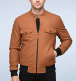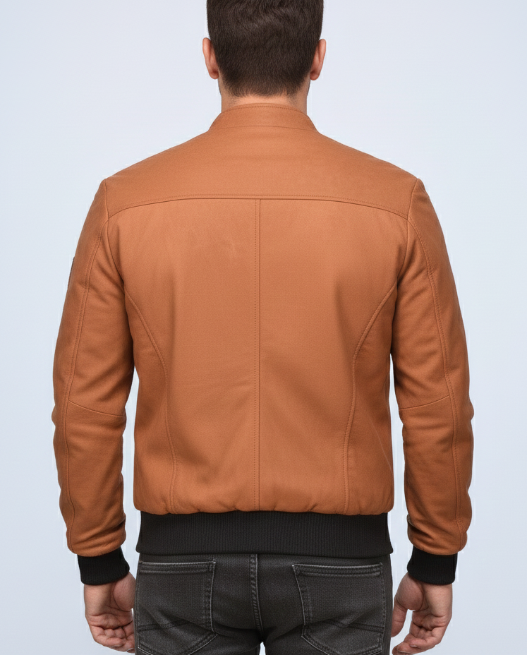 This stylish and versatile jacket is crafted from high-quality cognac nubuck leather material, offering a premium look and feel. The bomber-style silhouette features a zip-up front closure, two chest pockets, ribbed cuffs and hem for a classic, sporty aesthetic.