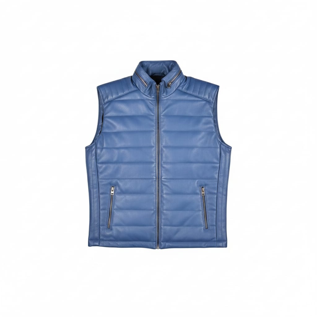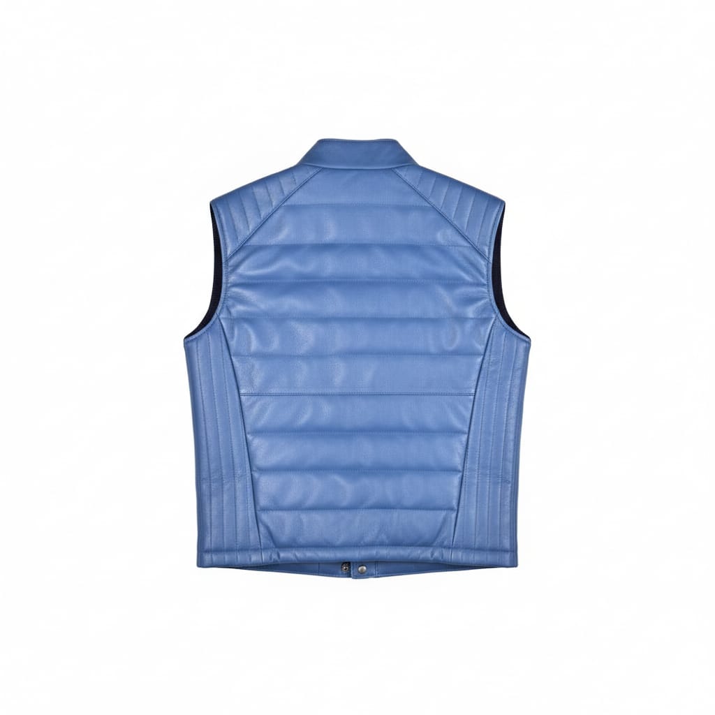 Crafted from high-quality, supple genuine leather, our leather vests features a distinct horizontal puffer-style quilting that provides excellent insulation. The reinforced, diamond-stitched padding on the shoulders pays homage to vintage motorcycle jackets, offering a structured silhouette that commands attention.