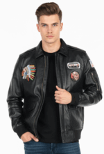 The overall effect is a personalized, well-traveled look that exudes an effortless cool. Whether paired with distressed denim or sleek trousers, this customized leather jacket is sure to become a standout piece in any wardrobe.