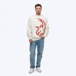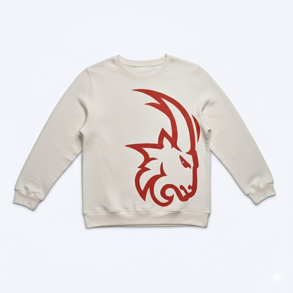 Elevate your everyday rotation with our Cream Graphic Crewneck. Featuring a striking, oversized red tribal-inspired motif, this sweatshirt turns a classic silhouette into a piece of wearable art. The off-white “cream” base provides a soft, premium backdrop that makes the vibrant red graphic pop.