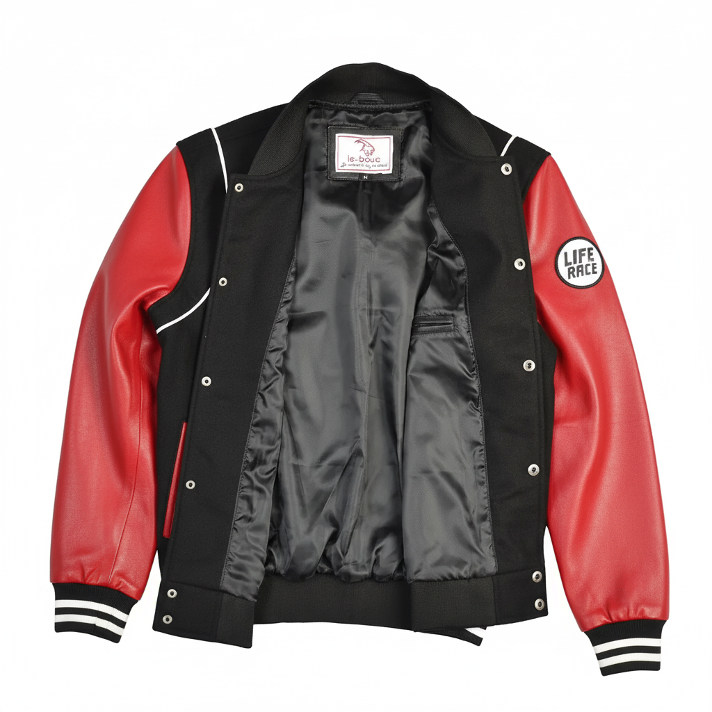 Overall, this appears to be a stylish and functional varsity jacket that could appeal to those looking for a mix of classic and modern design elements in their outerwear.